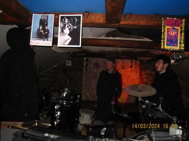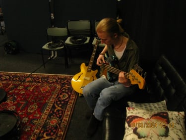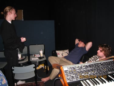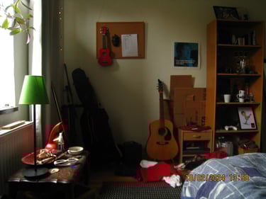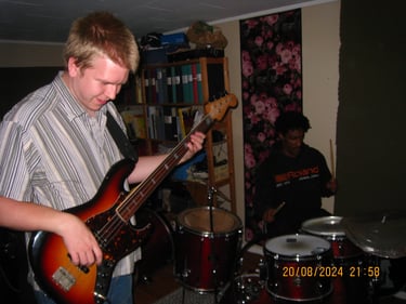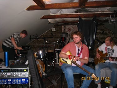 Strax efter inspelningen med Tobbe hyrde vi en replokal av Viggos föräldrar i samma studio. På bilden ovan finns det ingen plats för att spela. Det låg minst tio lager v dam på allt som gick att ta på och saker precis överallt. Just nu ser det bättre ut men det finns verkligen plats för förbättring.