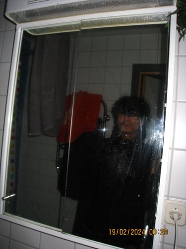 Här står jag och Bimo, redo att spela in en musikvideo men jag är lite förtrollad av spegeln för tillfället.