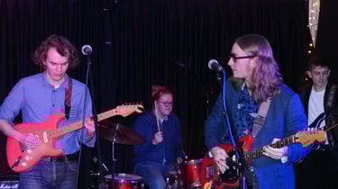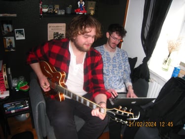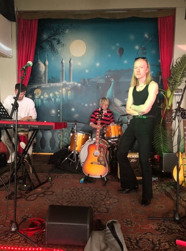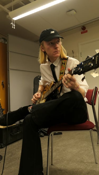 Detta är en bild från Adam Hante's uppspel. Uppspelen på Skurup var en av de roligaste sakerna som vi gjorde på utbildningen. Man fick spela musik som alla tyckte om med människor som man tycker om. Det fick också hela musiklinjen att förenas i en ritual som förde oss alla samman för en stund.