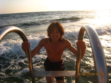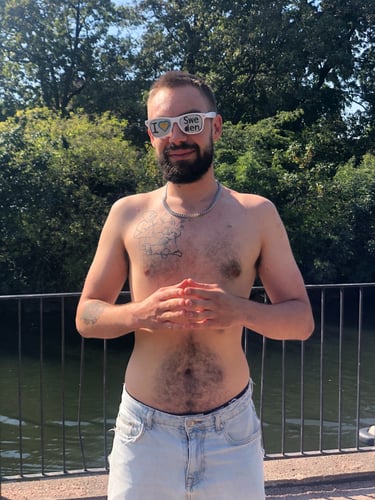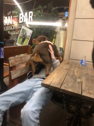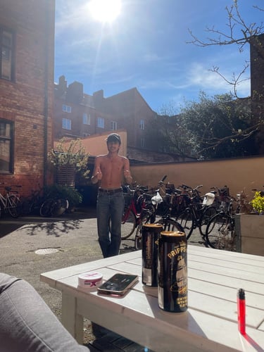 Här är en av många bilder från sommaren 2023. En sommar som jag håller väldigt kär. På bilden sitter min kära vän Bimo och avnjuter en öl i Malmösolen.