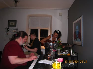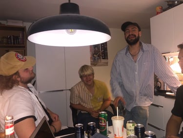 Reunion! För första gången på ett år så satt vi alla i Bimos lägenhet igen. Några medlemmar har blivit utbytta men annars var det precis som det brukade vara.