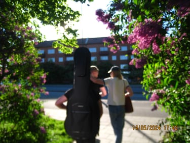 Maj är den månad då det nalkas skolavslutning på alla håll och kanter. Det kittlar i fötterna och man kan inte riktigt sitta still för att solen för förta gången på åtta månader skiner igen. På bilden har vi precis spelat på latinskolans bal.