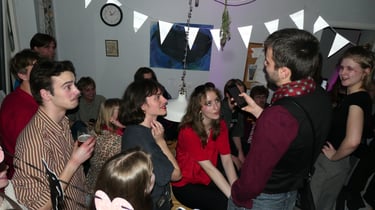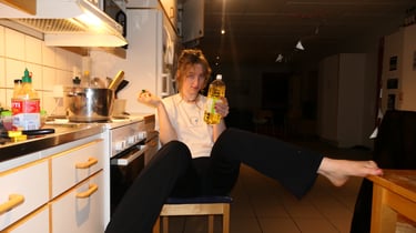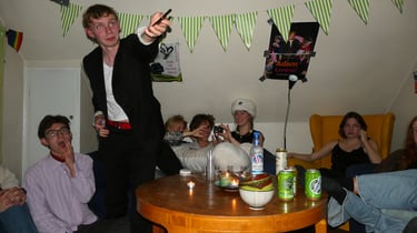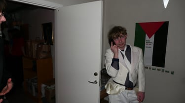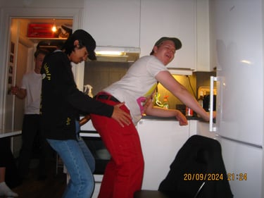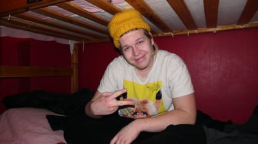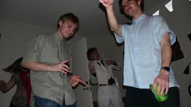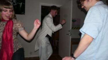 Här tänker Bimo: "Fest på 17 kvadrat meter, det trodde jag minsann aldrig"