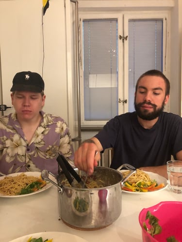 En av mina finaste minnen är att bo på internat. Framför allt alla mysiga kvällar jag fick ha med dem som jag bodde med. Olof, Theo, Isak, Hampus och Edith var personer som jag alltid hade roligt med. Vi brukade oftast laga middag ihop och sedan kolla på film. Det var mycket trevligt och det är något jag ser tillbaka på med lycka i bröstet. På bilden ovan misstänker jag att vi handlar ingredienser till vår pumpagnocci som inte blev särskilt god.