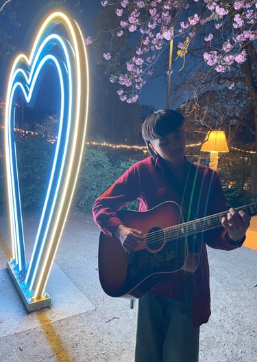 Här är en bild från Viggos mammas 50 års kalas. Viggos fina familj beslutade sig för att överraska Vikki och jag tror inte Vikki kunde blivit gladare än hon var i den stunden. På bilden står Viggo tillsammans med sin farmor och spelar en gammal familjehit för släkten. Jag har aldrig träffat en piggare eller gladare farmor än henne. Hon predikar kärleken något enormt och hon har till viss del inspirerat mig. Jag vill också tro att det är pågrund av kärleken som hon är så pigg och glad som hon är.