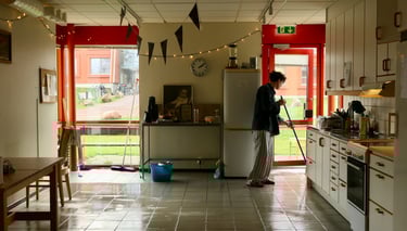 Precis som allt annat så har festerna också ett slut och det är oftast mindre kul. Då är det viktigt att man städar upp så att livets eviga fest kan fortsätta. Här står David och moppar golvet efter Fridhmes Blackbox.