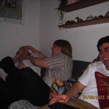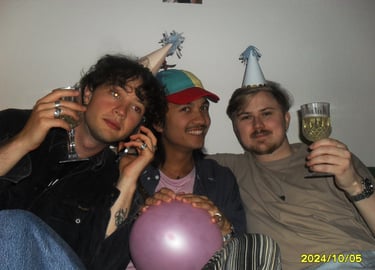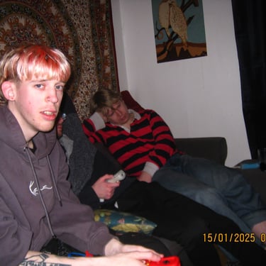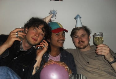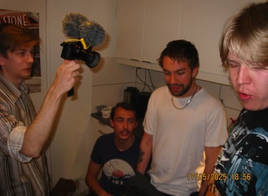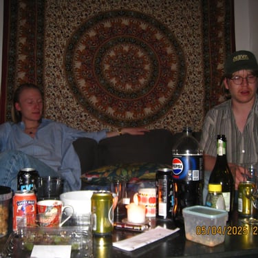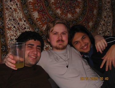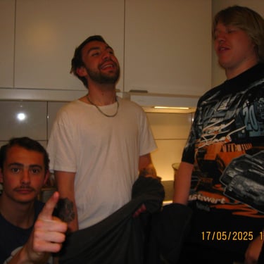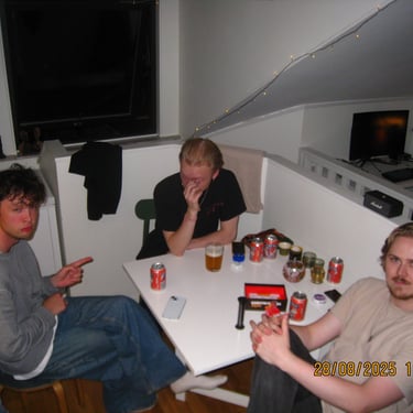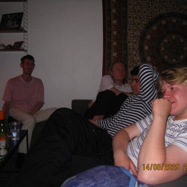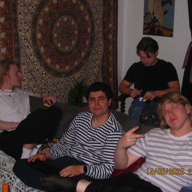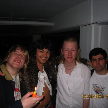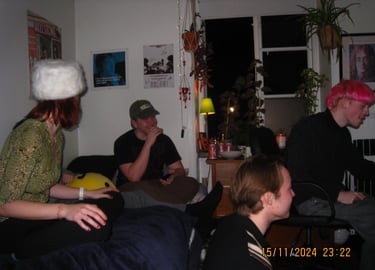 Här sitter Anton Estby, Henrythefrreak, sångaren i Mami Umami och Viggo. Människor som i samma sällskap antagligen aldrig kommer att vistas i min lägenhet igen. Därför var jag bara tvungen att knäppa en numera "legendarisk bild".