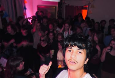 Här tänker Bimo: "Fest på 17 kvadrat meter, det trodde jag minsann aldrig"
