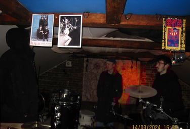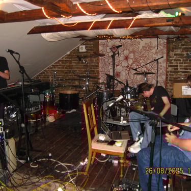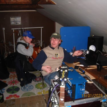 Strax efter inspelningen med Tobbe hyrde vi en replokal av Viggos föräldrar i samma studio. På bilden ovan finns det ingen plats för att spela. Det låg minst tio lager v dam på allt som gick att ta på och saker precis överallt. Just nu ser det bättre ut men det finns verkligen plats för förbättring.