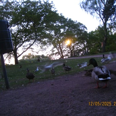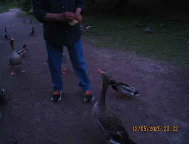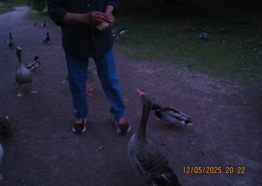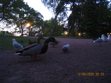 I Maj månad hängde jag och Tim en del i slottsparken. En dag stötte vi på en man som varje gryning i över fem år har funnit sig vid samma plats för att mata fåglarna i Parken. Det var väldigt fint o se hans passion intresse för dessa djuren som han nästan såg som sina egna. Änderna var så pass tama att man kunde mata dem direkt ur handen.