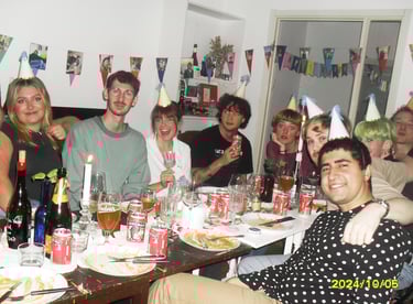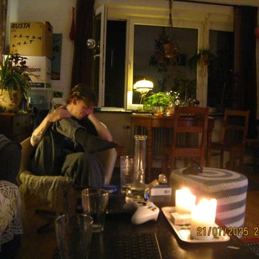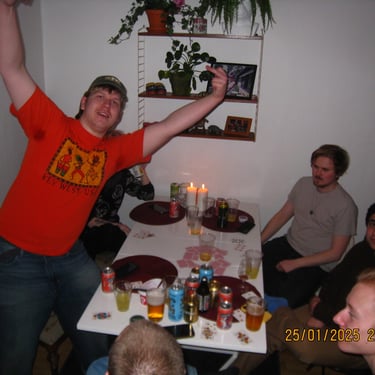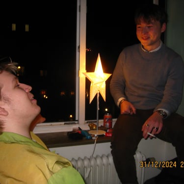 Nyår 2025 som firades i min nya lägenhet på brogatan. Det var mycket trevligt men en väldigt förhastad kväll.
