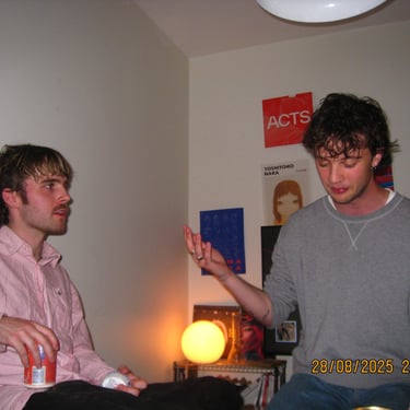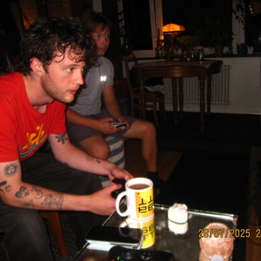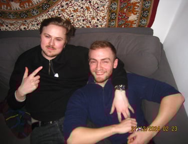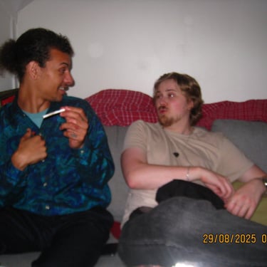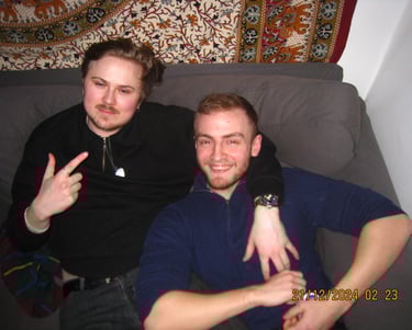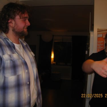 Här sitter Albin och Douglas i min lägenhet. Återförenade efter et långt uppehåll. Livet har kommit i vägen för många under denna tiden i våra liv men när tiden och lusten finns där så ordnar sig det mesta.