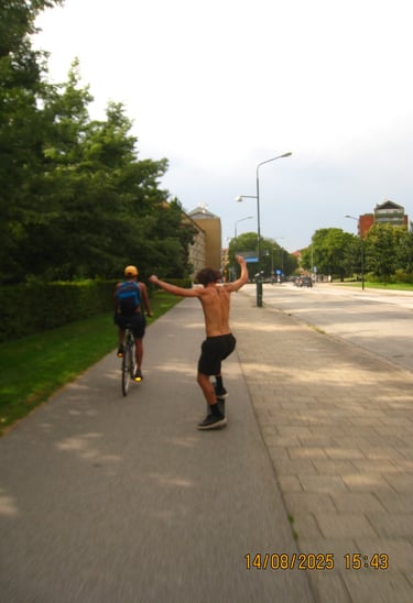 Detta var antagligen den mysigaste dagen på hela sommaren. Under denna tiden hade jag börjat hänga en del med Thiago igen. En otroligt fin människa som alltid är glad och full av värme. Även fast vi inte har samma modersmål så kan jag ändå se djupet hos honom och jag hoppas och tror att han gör detsamma med mig. Något som jag inte har lyckats se hos någon annan med en språkbarriär. På bilden sitter vi i Västra hamnen, dricker kaffe, spelar boll och röker. Det är något speciellt med att hänga med Brasilianare. Dem är mycket mer aktiva, rör sig mer, har aldrig tröja på sig och är öppen för att prata om precis vad som helst. Det kändes lite som att vara barn igen. Ni vet när hela ens kropp luktar "utomhus" och man verkligen känner ett rus av att vara ute o röra på sig. Det kan låta väldigt självklart för många men i det svenska vuxenlivet sitter man tyvärr mest stilla. Tack Thiago.